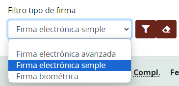 Se añade un nuevo tipo de filtro para el tipo de firma realizada en el índice de registros.
